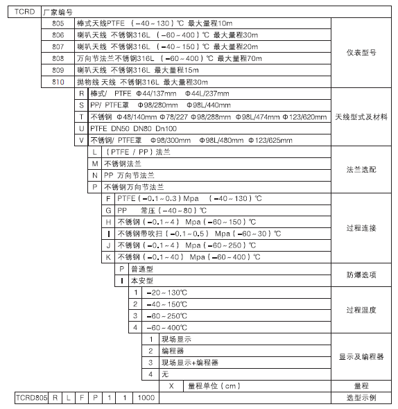 高頻雷達物位計TCRD806技術(shù)參數(shù)